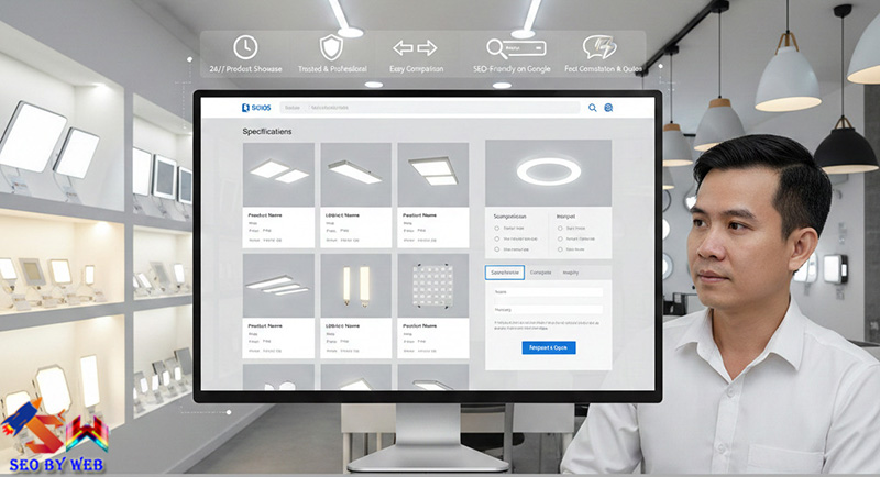 SEOBYWEB xây dựng website bán đèn LED dựa trên hành vi mua hàng và nhu cầu tìm kiếm thực tế của khách hàng trong ngành chiếu sáng.